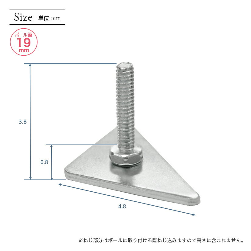 商品仕様 商品名 [19mm] ルミナス ライト三角プレート 2個セット IHT-A2 型番 IHT-A2_100 JANコード 4524871661703 ポール径 19mm 重量(約) 87g サイズ 商品サイズ(約):高さ0.8cm ※ポール取付時 内容明細 材質 スチール(亜鉛メッキ) 特徴 重い物を載せる時や安定感を増したいときにぴったりの固定脚です。