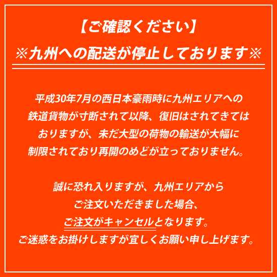 【※配送につきまして】 西日本豪雨の影響により、「九州全域」方面への西濃運輸の大型貨物輸送が大幅に遅れております。